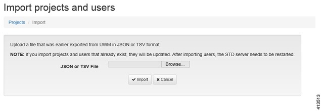 To import all projects and their users into the Cisco Modeling Labs version 1.2, complete the following steps: