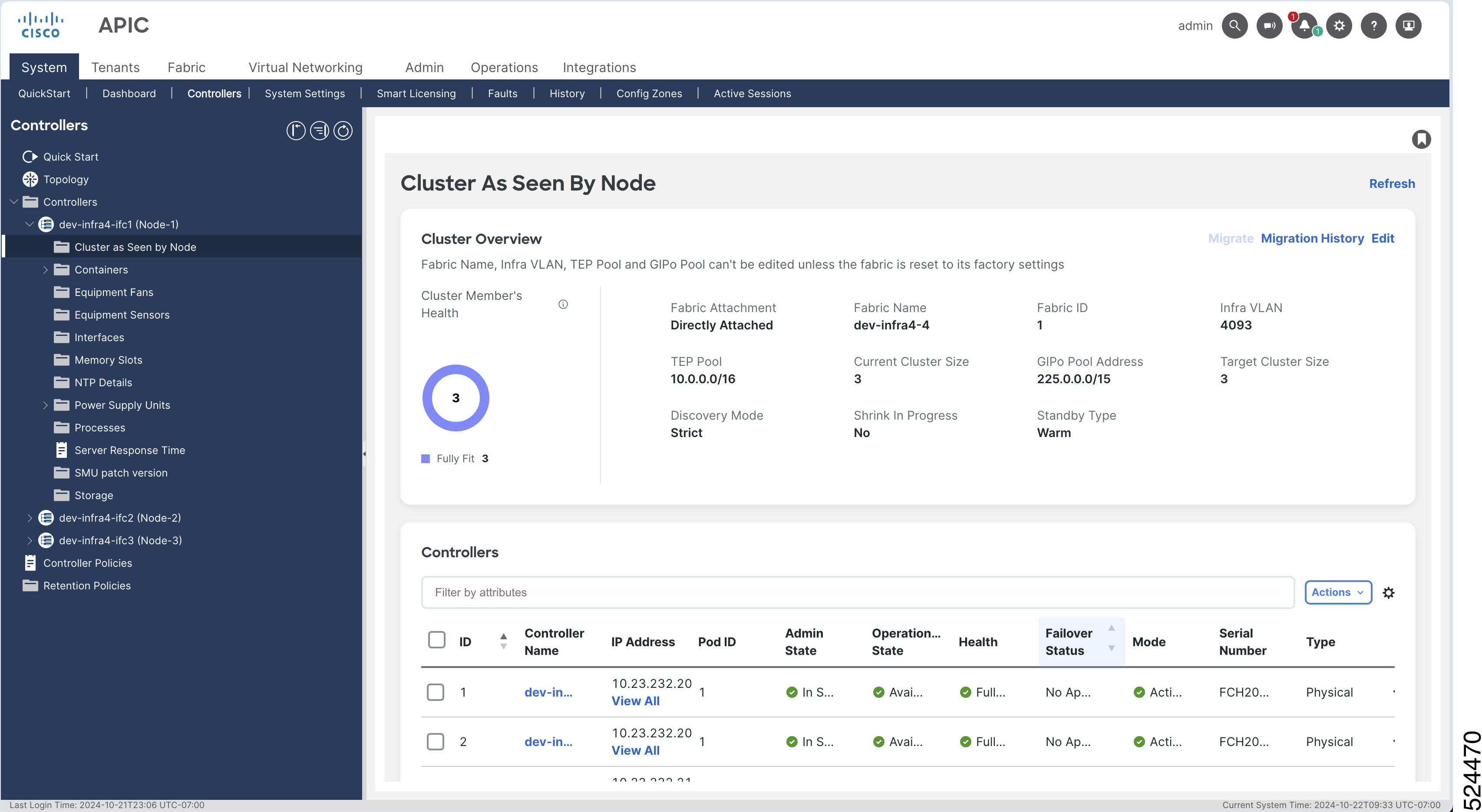 The selected standby APIC type is changed and the status is confirmed in the controllers view.