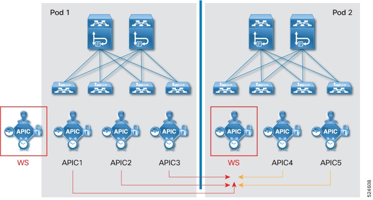 These examples are all multi-pod deployments because it’s unlikely for a single pod deployment to lose more than three APIC nodes or all APIC nodes in the cluster while the standby APIC nodes are intact. Nevertheless, a Warm Standby APIC is supported and functions in the same way for both multi-pod and single pod deployments.