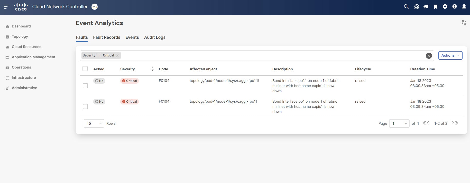 The metrics are displayed for the VM host where the Cisco Cloud Network Controller is deployed. |