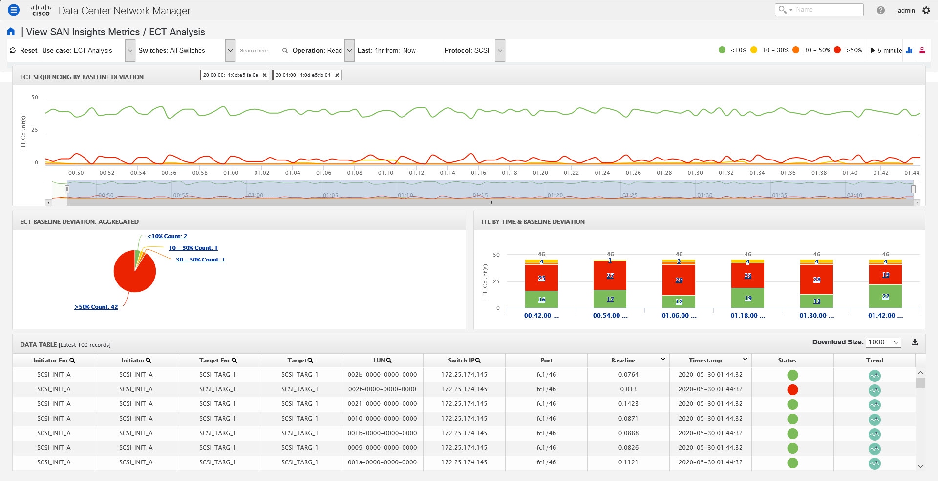 From the Cisco DCNM Web UI > Dashboard > SAN Insights, click on the View SAN Insights Metrics to view the ECT Analysis.