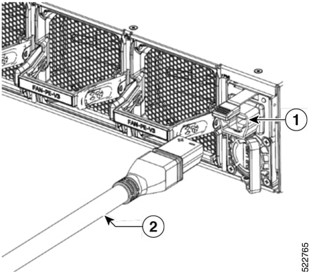 Step 5 | Close the cable clamp or cable retainer on the shoulder of the power cable to secure the power cable. Connecting AC power