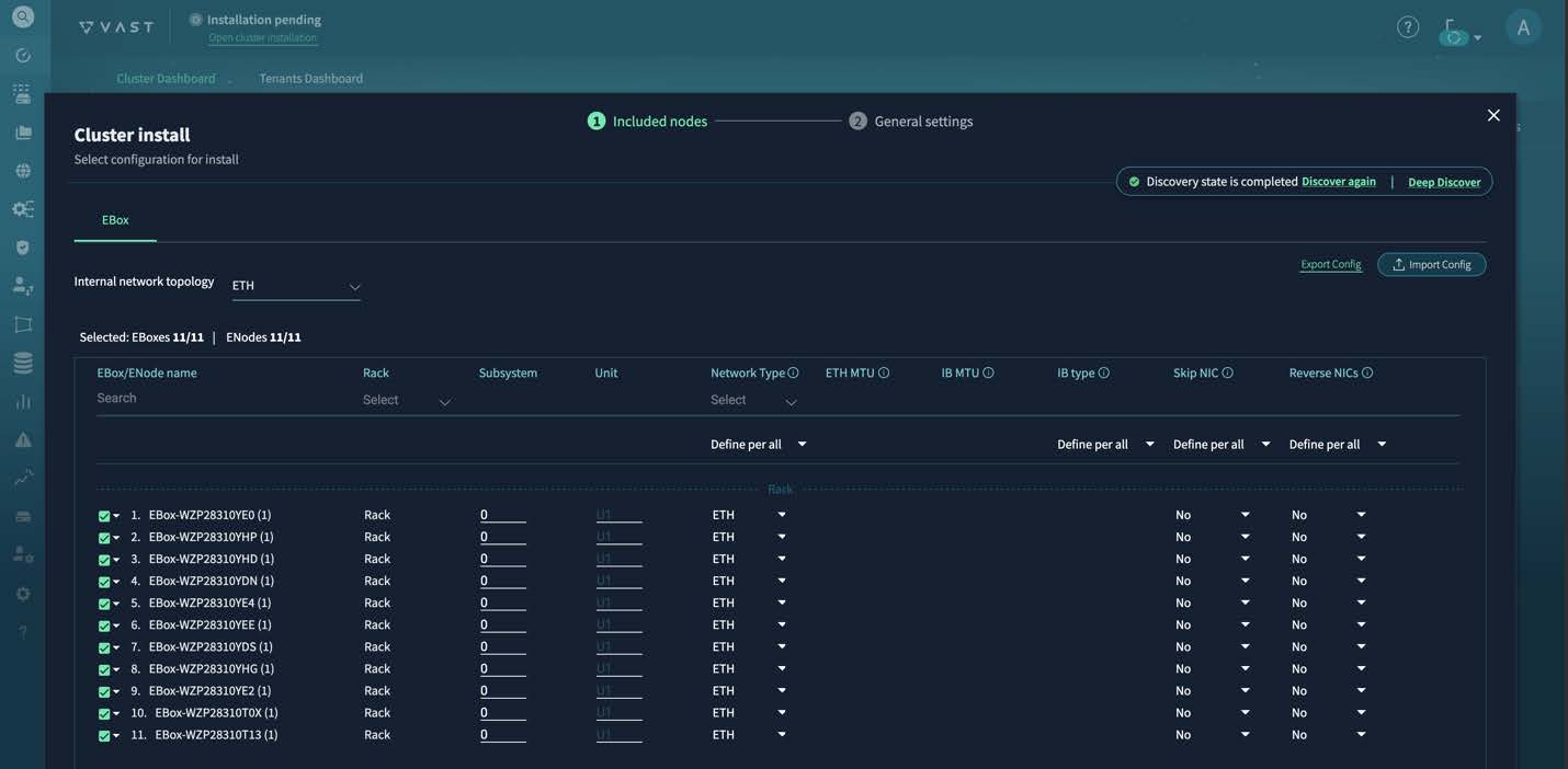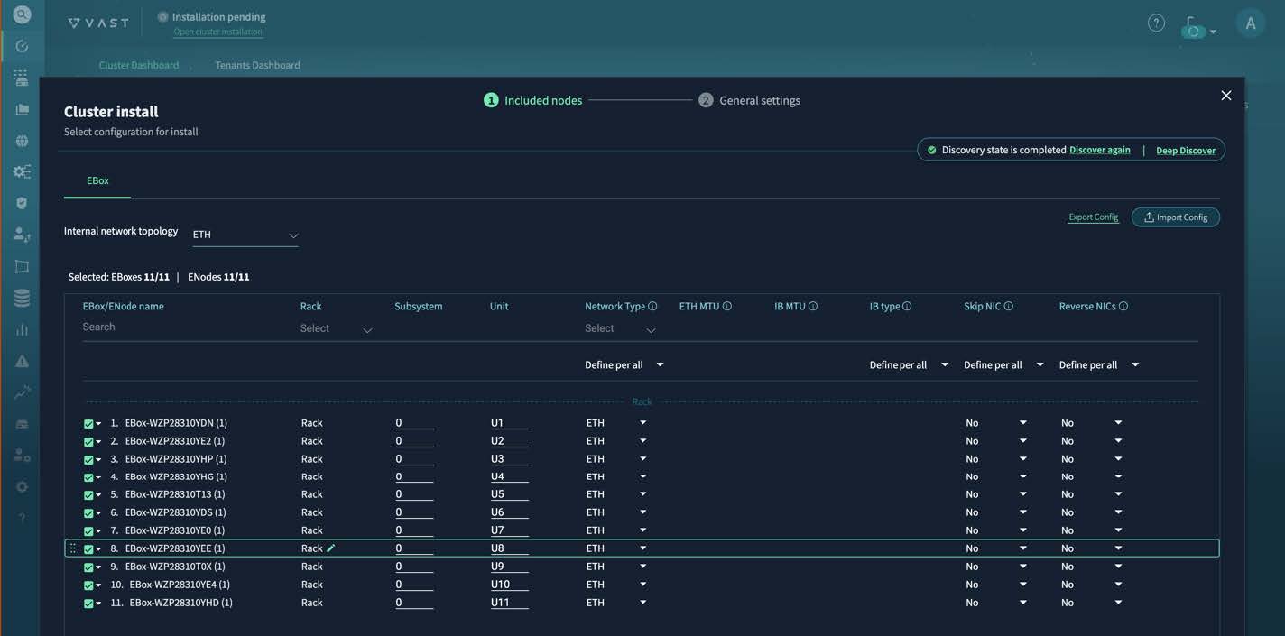 For more information about VAST cluster administration, see the VAST Cluster Administrator's Guide. | ||||||||