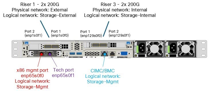 Example logical networks for a Cisco EBox storage cluster