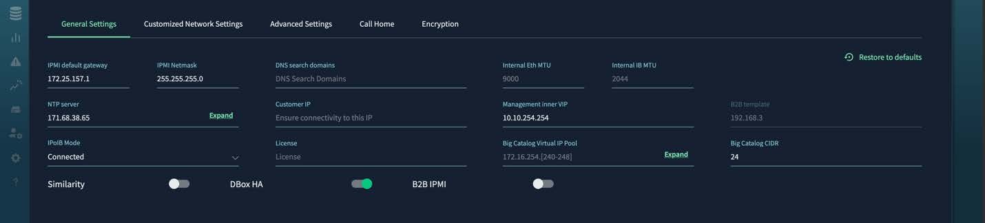 Step 2 | Use SSH to connect to one of the servers and view the contents of the /etc/vast-configure_network.py-params.ini file. The ini file must contain these settings: