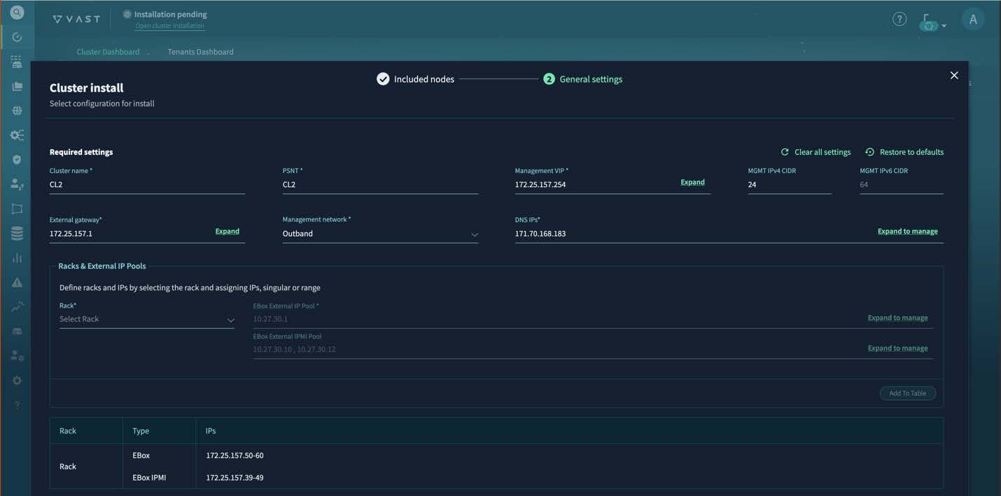 Step 2 | In the VAST Management System (VMS) GUI, navigate to . |