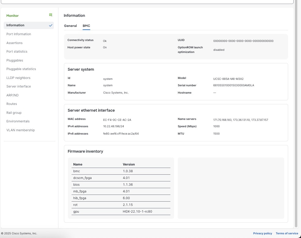 Cisco UCS servers provide a combination of high-performance compute servers and scalable, high-speed storage servers that are required for Artificial Intelligence (AI) applications. These servers are monitored through Cisco Nexus Hyperfabric, which uses telemetry to collect real-time performance and health data from each device. Cisco Nexus Hyperfabric tracks server metrics, but does not allow any configuration changes.