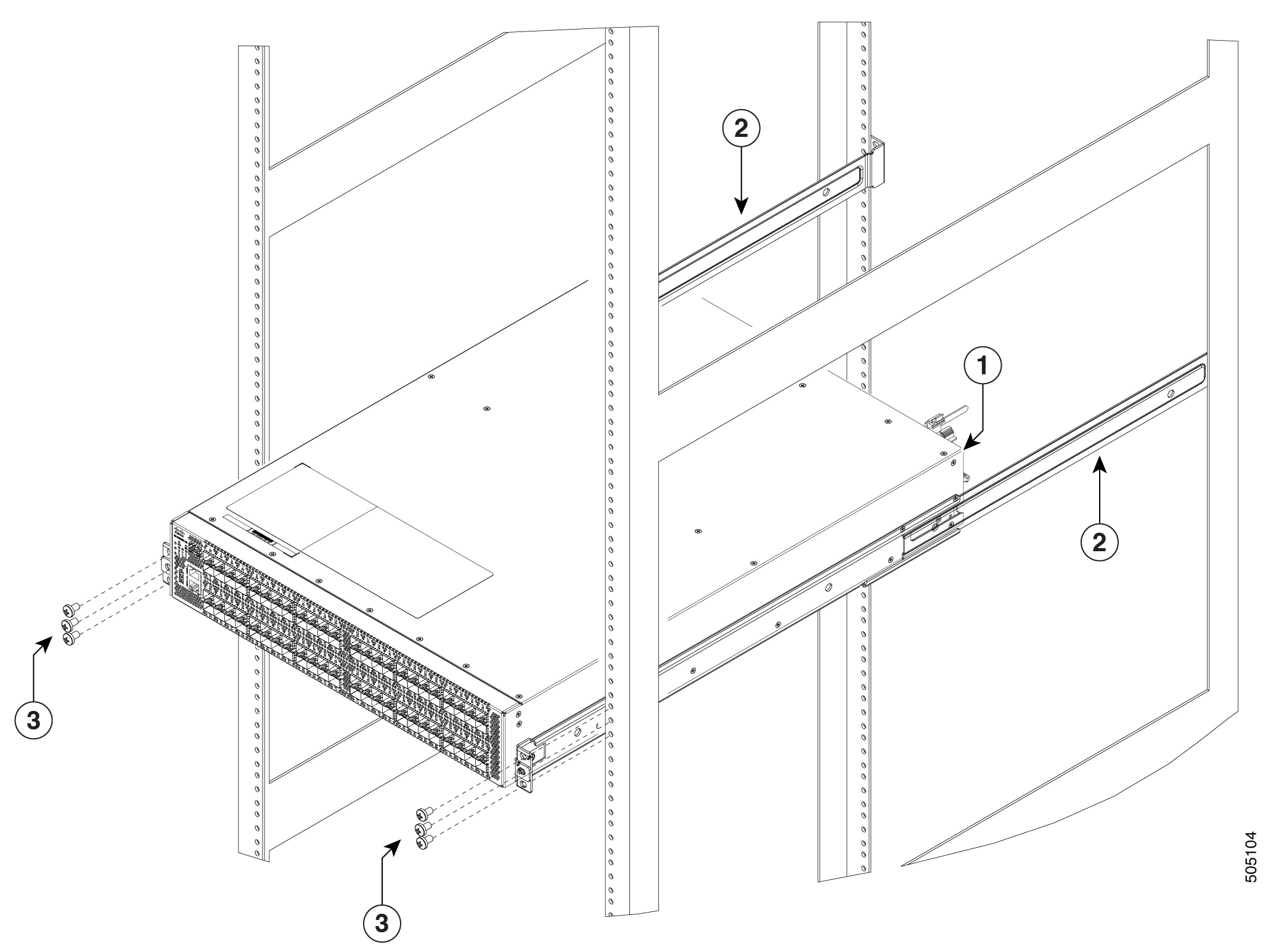 Slide the switch onto the shelf brackets, ensuring that it is squarely positioned. |