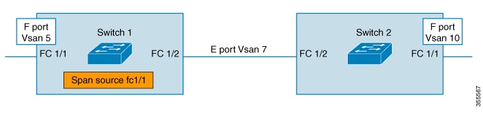 SPAN sources refer to the interfaces from which traffic can be monitored. When a VSAN as a source is specified, then all physical ports and PortChannels in that VSAN are included as SPAN sources. A TE port is included only when the port VSAN of the TE port matches the source VSAN. A TE port is excluded even if the configured allowed VSAN list may have the source VSAN, but the port VSAN is different.