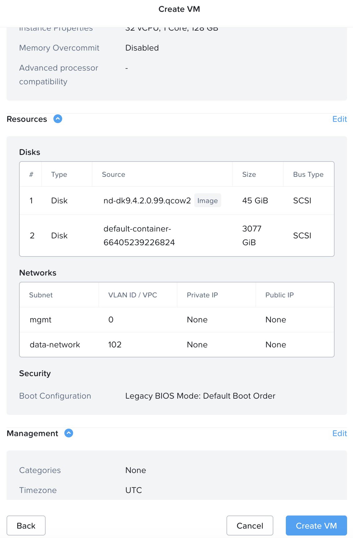 When deploying a Nexus Dashboard cluster in Nutanix, you must verify that you have enough system resources. There are multiple