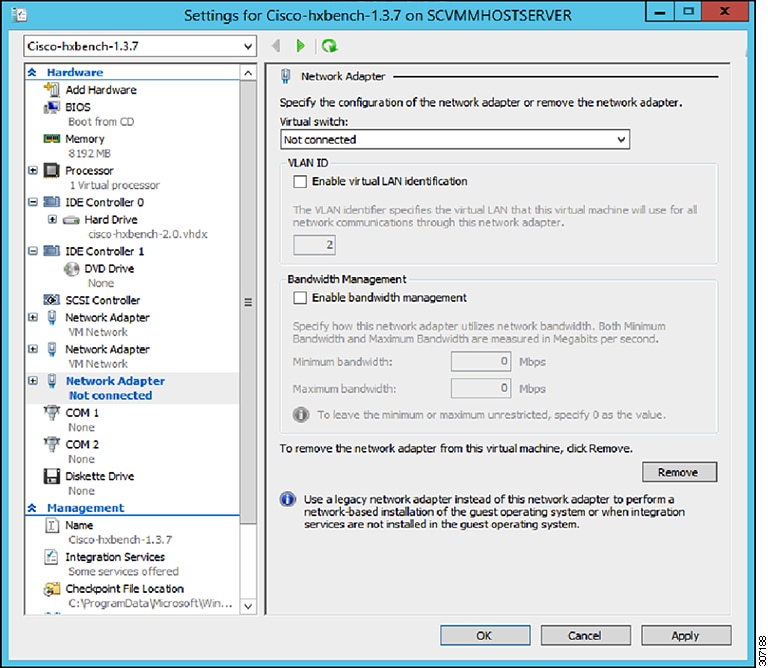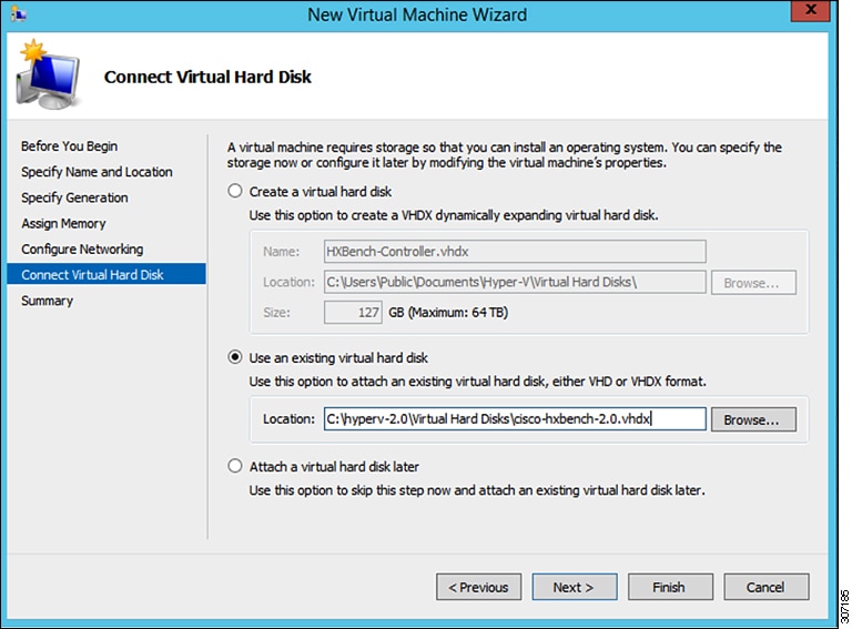 Extract the zip file Cisco-HxBench-2.0.zip and copy the vhdx file Cisco-HxBench-2.0-HyperV.vhdx to the HyperV server. |