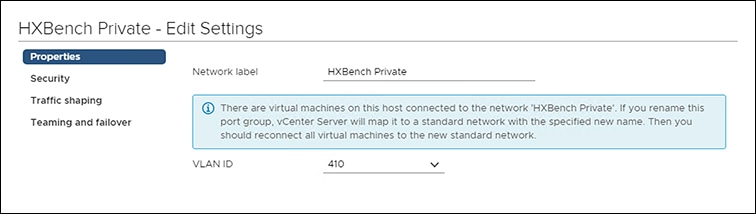 Using vSphere Web Client, create a Port Group labeled HxBench Private on the newly created Standard / Distributed Switch or on the selected Standard / Distributed Switch with a valid VLAN ID.