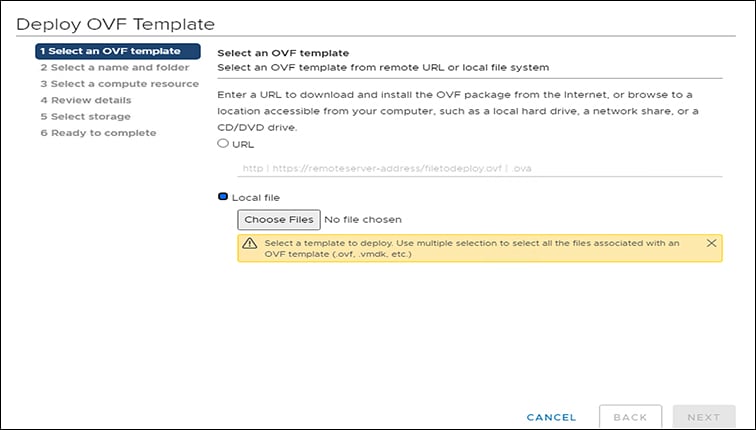 Select the OVA template file you want to deploy from the disk.