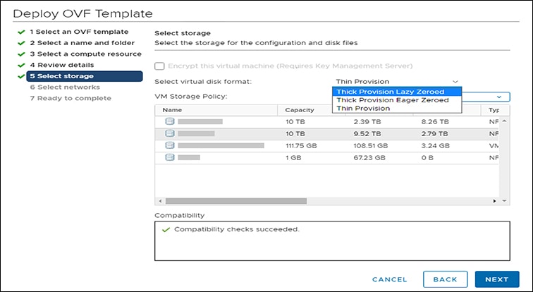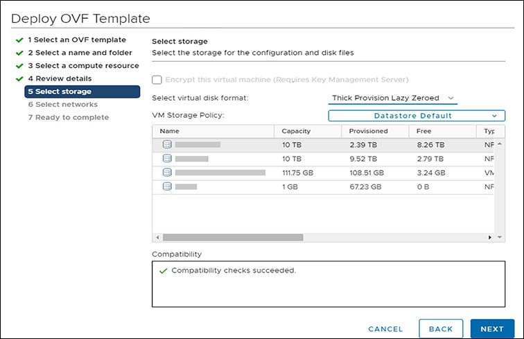 Under Select Storage, select the datastore where you want to deploy the VM. Click Next.