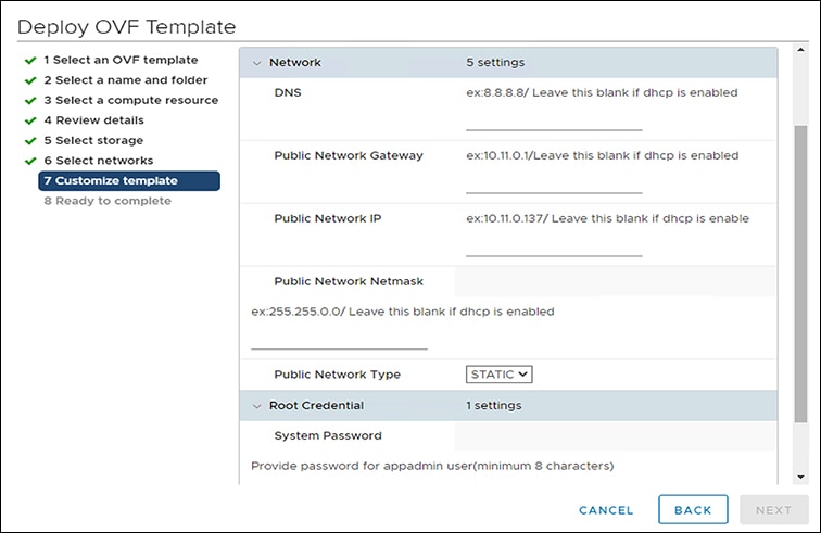 Under Customize template, configure the Network settings. You can configure either DHCP or a Static IP address for the VM.