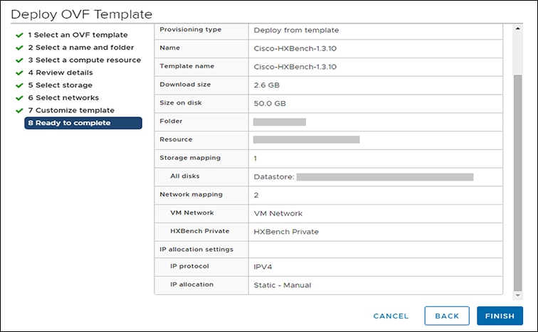 Review the selected options to start deploying the OVA. Click Next. |