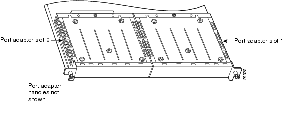 Figure 1-10 shows a VIP with installed port adapters. With the VIP oriented as shown, the left port adapter is in port adapter slot 0, and the right port adapter is in port adapter slot 1.