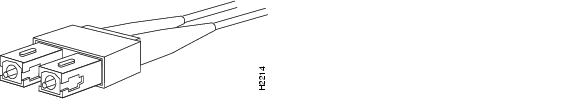For FDDI single-mode connections, use one duplex SC-type connector (see Figure 1-8) or two single SC-type connectors at both the port adapter end and the network end (see Figure 1-9). Single-mode optical fiber cable has a narrow core (8.7 to 10/125-micron), which allows the light to enter only at a single angle.