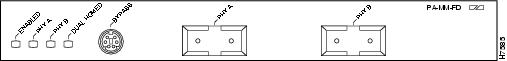 PA-F/FD-MM—FDDI PHY-A multimode, PHY-B multimode port adapter with optical bypass switch capability and full-duplex capability (see )
