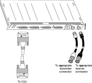 For T1, two standard serial cables, null-modem and straight-through, are available from Cisco Systems and other vendors for use with the PA-CT3/4T1 port adapter. The PA-CT3/4T1 port adapter T1 interface cables are used to connect your router to external CSUs or a MIP card. The PA-CT3/4T1 port adapter T1 interface cables have two male 15-pin DB connectors at each end to connect the PA-CT3/4T1 port adapter's T1 interfaces.