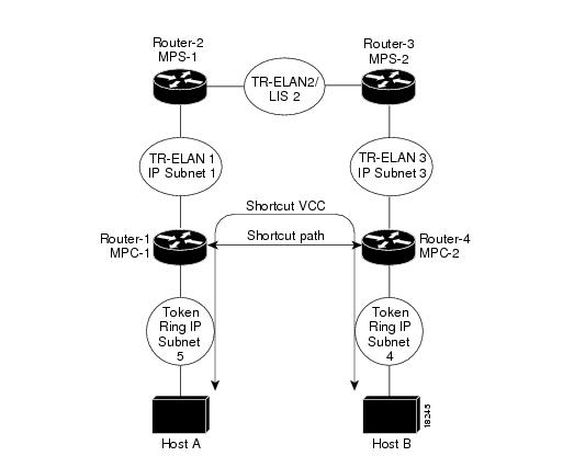 The MPOA for Token Ring Networks feature allows Token Ring hosts on an ATM network to communicate over direct paths (called shortcuts) through the ATM network. These shortcuts bypass the intermediate router hops that otherwise would be encountered in the default path.