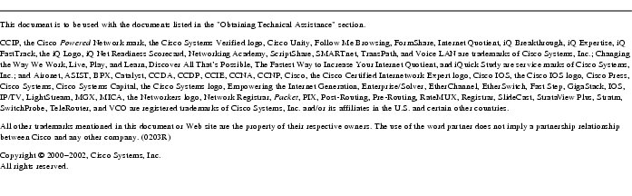 You can find the most current Cisco IOS documentation on Cisco.com and the Documentation CD-ROM. These electronic documents may contain updates and modifications made after the hard-copy documents were printed.