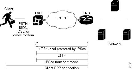 The deployment of Microsoft Windows 2000 demands the integration of IPSec with L2TP because this is the default virtual private dialup network (VPDN) networking scenario. This integration of protocols is also used for LAN-to-LAN VPDN connections in Microsoft Windows 2000. The L2TP Security feature provides integration of IPSec with L2TP in a solution that is scalable to large networks with minimal configuration.