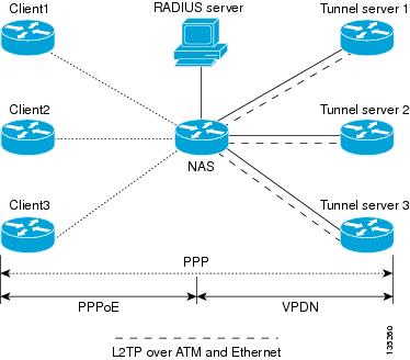 This feature allows the L2TP tunnel server to perform remote authentication and authorization with RADIUS on incoming L2TP NAS dial-in connection requests. This feature also allows the L2TP NAS to perform remote authentication and authorization with RADIUS on incoming L2TP tunnel server dial-out connection requests.