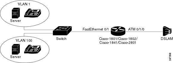 This feature supports the deployment of voice, video, and data services on customer premises equipment (CPE) by enabling the router to transport 802.1q tags over Asynchronous Transfer Mode (ATM) permanent virtual circuits (PVC). This feature requires an ADSL2+ data connection.
