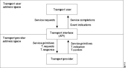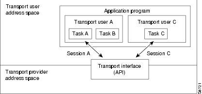 The Cisco IOS for S/390 API is an interface between a transport service provider (TP) and a transport service user (TU). The transport provider operates in its own address space and provides transport services to application programs or session layer entities using Internet protocols. The transport user operates in its own address space and accesses those services using the transport interface (the API).