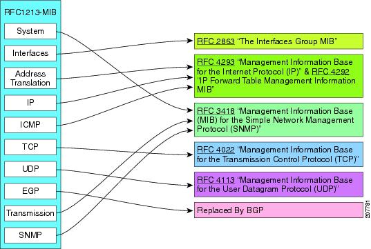 Figure C-1 describes the evolution of various groups in RFC 1213. It shows where the information provided by each group in RFC 1213 is available now.