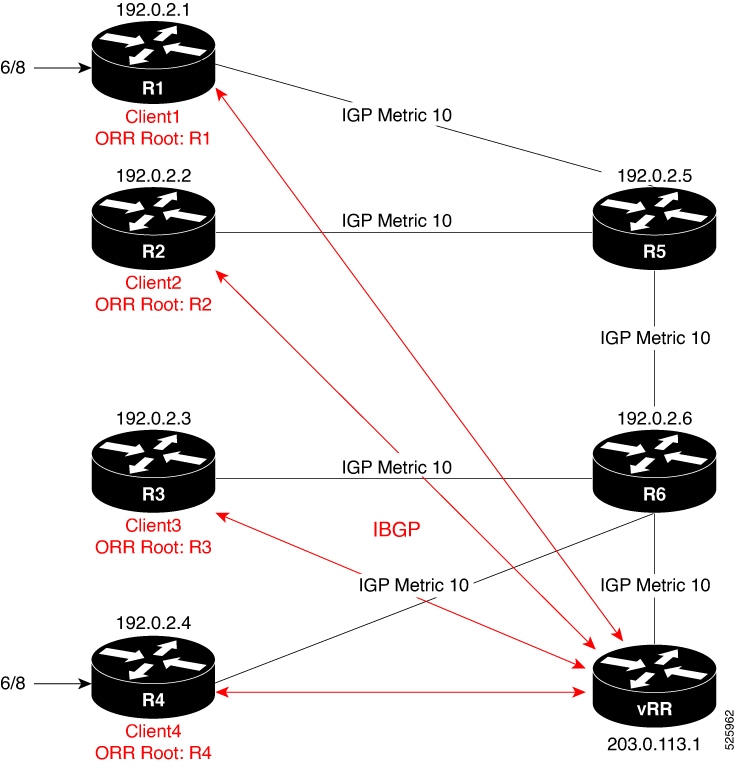 Details BGP optimal route reflector functionality, including operational restrictions, the effect of ORR on route reflector client path selection, and step-by-step procedures to configure BGP ORR for route reflector clients.