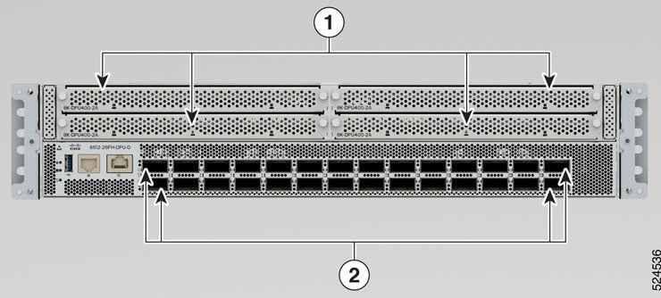 Cisco 8102-64H-O Router Front and Rear Panel View