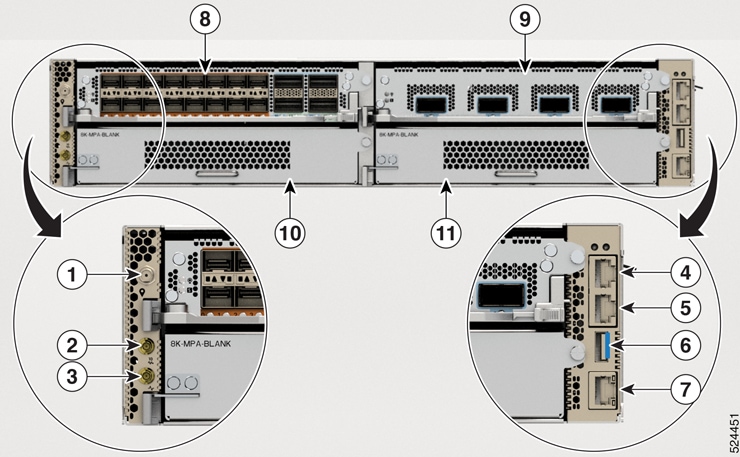 | 3 | Mini coax connector for 1 PPS, input, and output. | 9 | MPA Slot 1 | ||