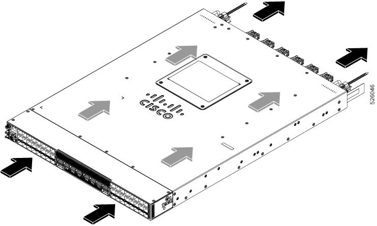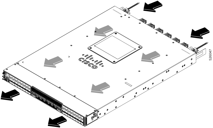 The airflow direction must be the same for all power supply and fan modules in the chassis. That is, you must use PSI power modules with PSI fan modules and PSE power module with PSE fan modules only. |