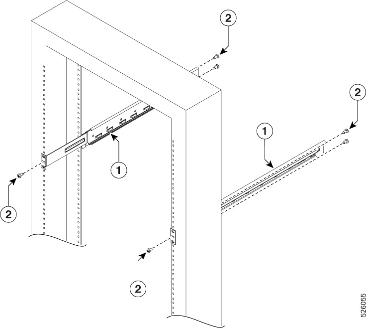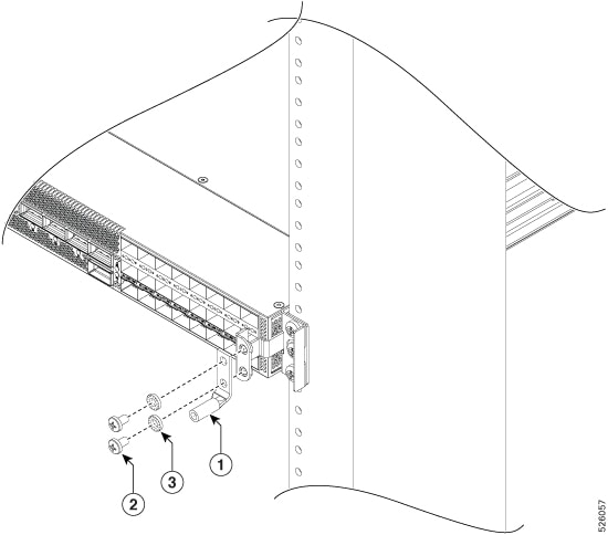 Mount the Bracket mounting adapter on the 23-inch rack post. Use three 12-24 Phillips pan-head screws with 30 in-lb (3.39 N.m) to attach each Bracket mounting adapter to the rear and front rack post on either sides.