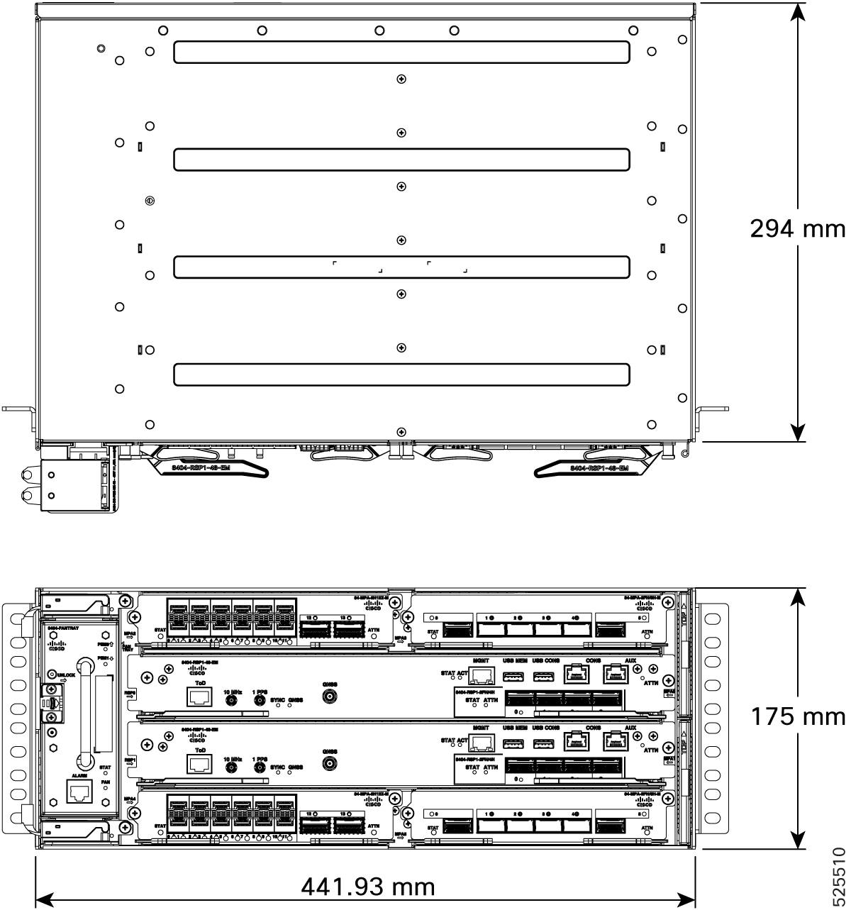 The image below illustrates the Cisco 8404-SYS-D Router chassis design.