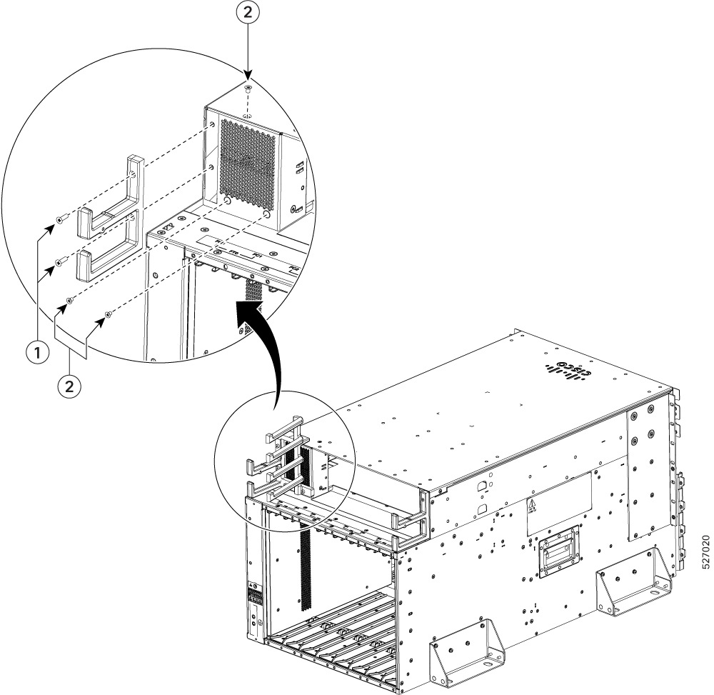 Unpack the Cisco 8818 chassis, then immediately install the pull-bars. Do not remove the shipping brackets or move the chassis from the pallet until this is done. See (Only Cisco 8818) Install the Pull bars on the Chassis. |