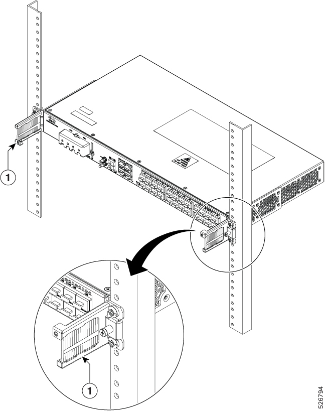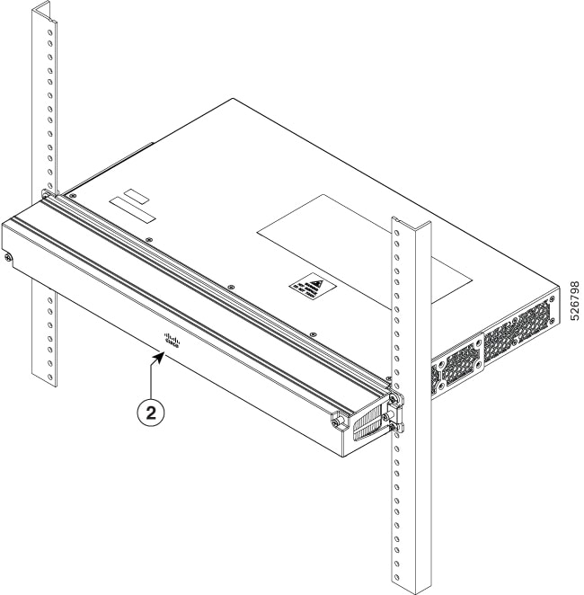 1. Lift and position the router into position between the two rack posts.