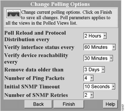 Select values from the drop-down list boxes to change any of the polling options, then click Finish.