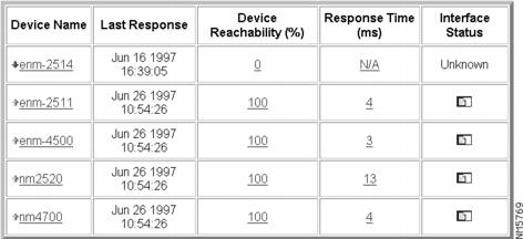 You can use the Reachability Dashboard to view device reachability and learn when a device last responded. The Dashboard window is updated every minute.