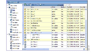 A job group is represented with a colored background. All of a group’s child jobs are indented underneath the group name. Each job group can include jobs and other job groups, which in turn can include other jobs and job groups. The window helps you visualize and navigate through the hierarchy of job groups. When you click the symbol to the left of a job group name, the display expands to show all of the jobs and job groups within the selected job group.