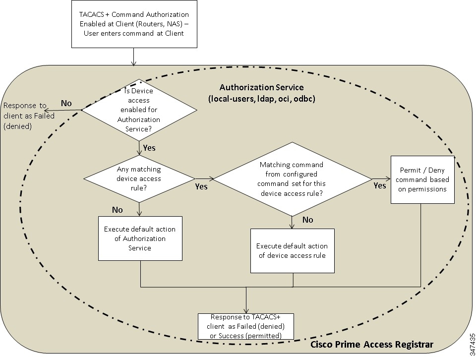 Prime Access Registrar provides command authorization support to authorize the cmd mode commands. Command authorization is based on device access rules and the decision to authorize is based on command sets and conditions or expressions defined for the access rules. They determine whether to authorize a set of commands for the user or not.