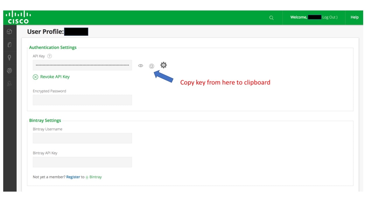 Password= <== this is the API key that you have obtained while setting up your username from https://devhub.cisco.com/artifactory/webapp/