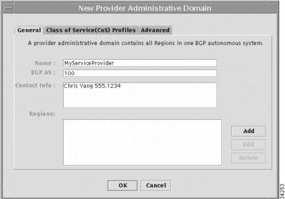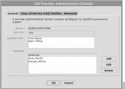 The Edit Provider Administrative Domain dialog box appears.