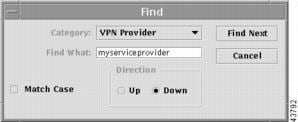 From the VPN Console window, choose Find > Find Provider Region.