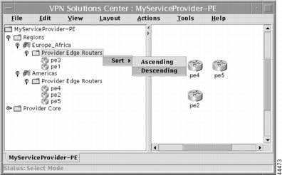 You can sort the display of Regions and Provider Edge Router. To do so, select either the Regions or Provider Edge Routers folder, then right-click. The Sort menu appears (see Figure 2-61).