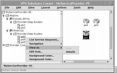 When you open the folders in the hierarchy pane, you can see the names of the PEs, the Regions, and the Service Provider with whom they are associated (see Figure 2-60).