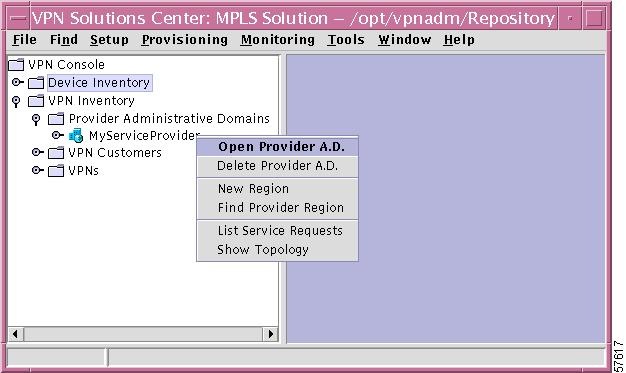 From the VPN Console hierarchy pane, click the open-close icon for the Provider Administrative Domain folder.