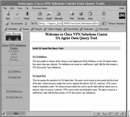 The VPN Solutions Center Data Query Tools page appears (see Figure 5-1).